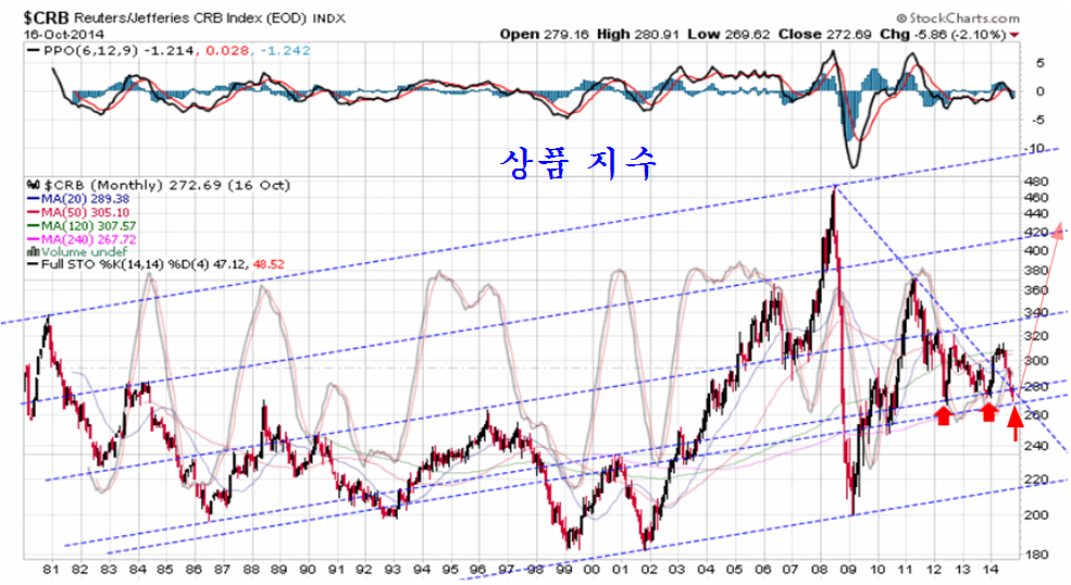 상품지수의 대세 하락 추세의 마감과 대세 상승
