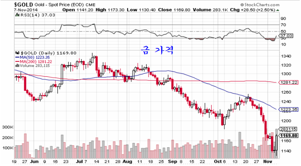 금가격의 하락 마감과 장기 상승세 전환