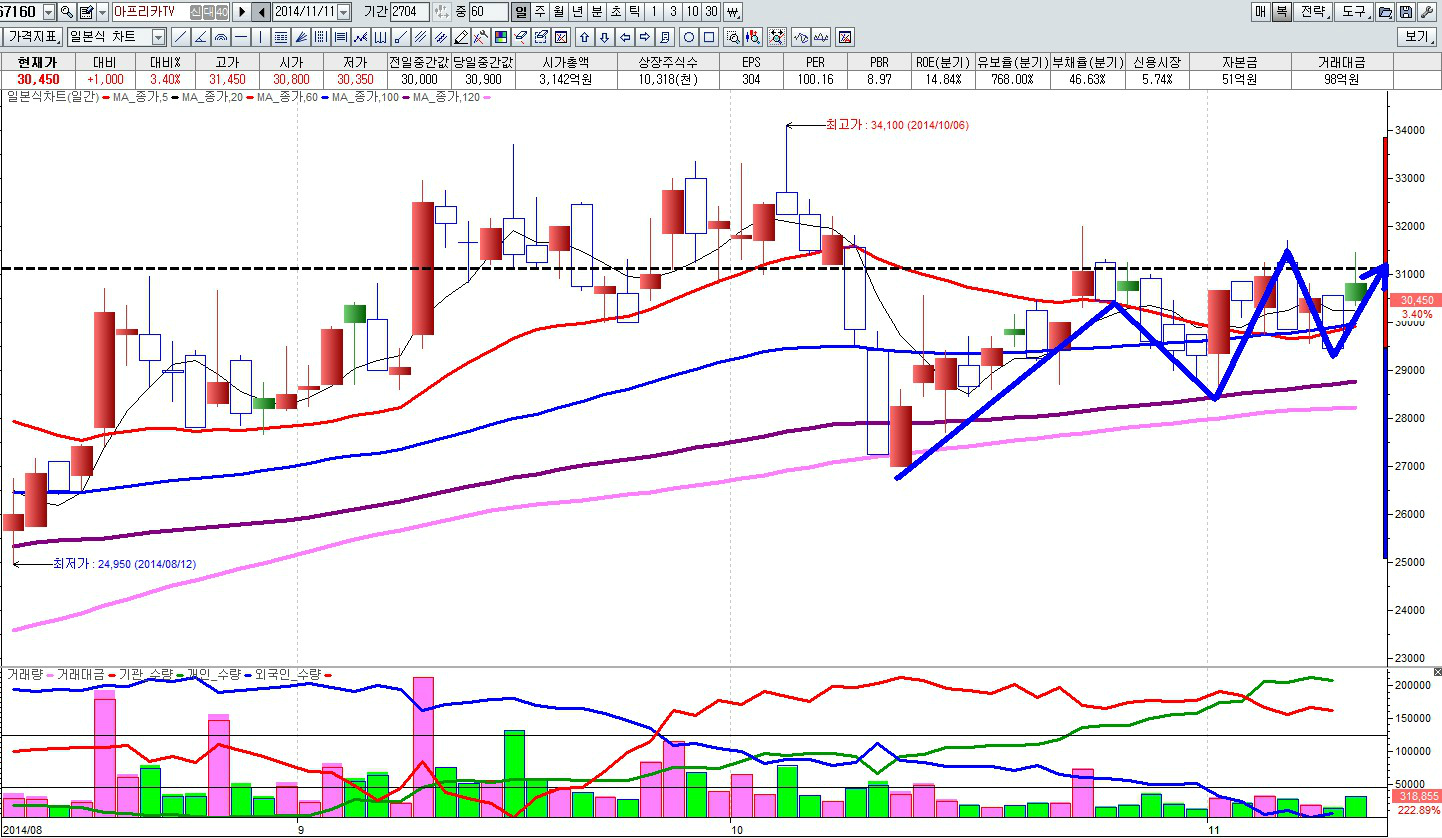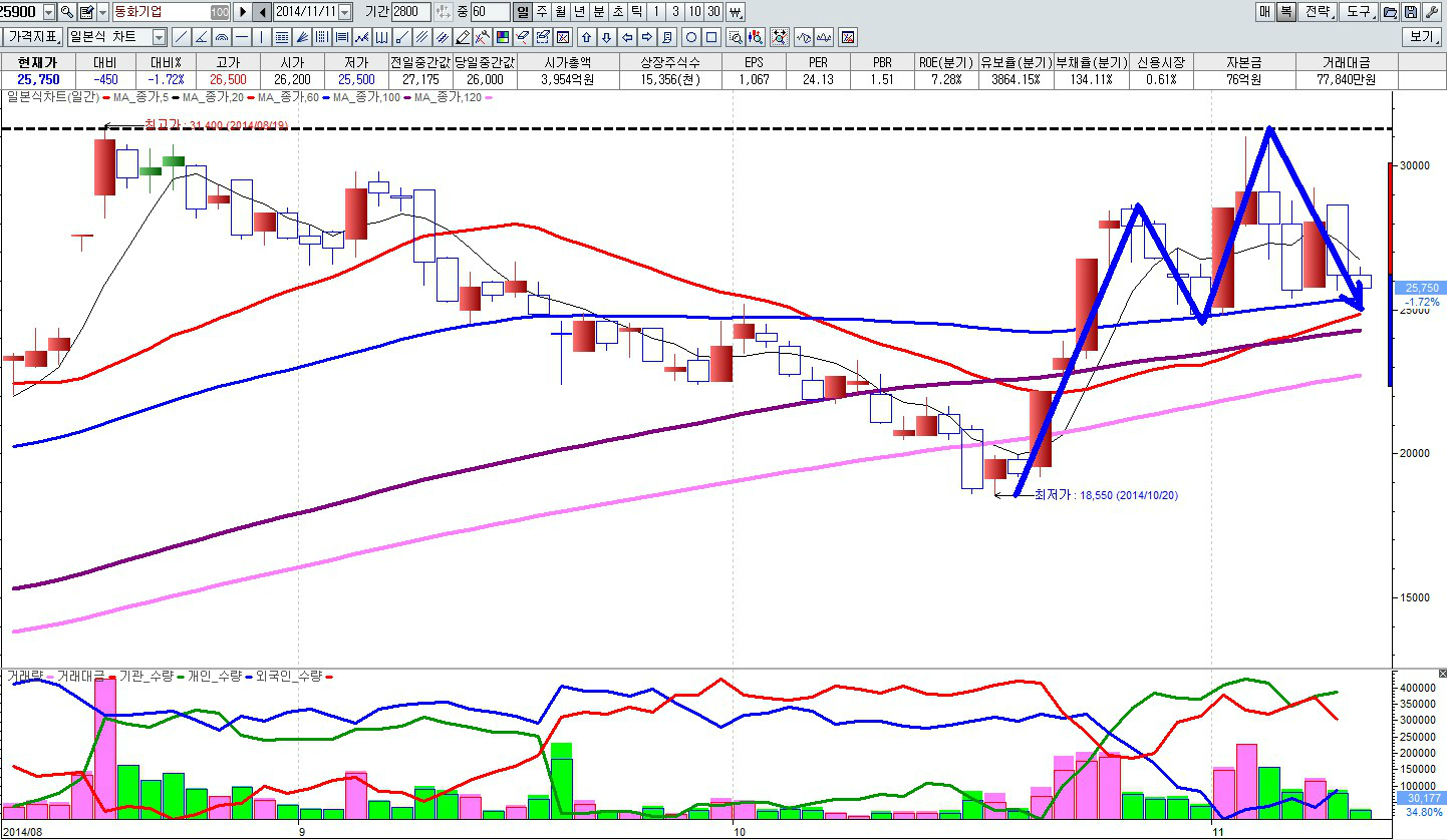 따라서 어제 팍스넷 TV방송에서 종합지수값대비 상승모멘텀이 강하지 않다고 언급해 드린바 있다.
