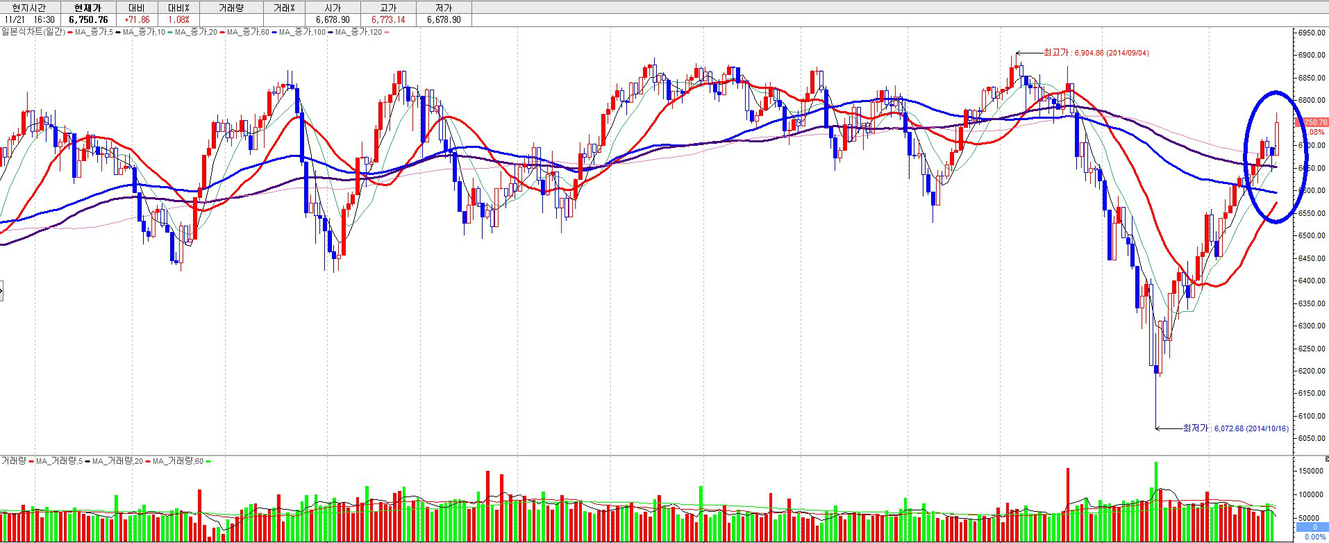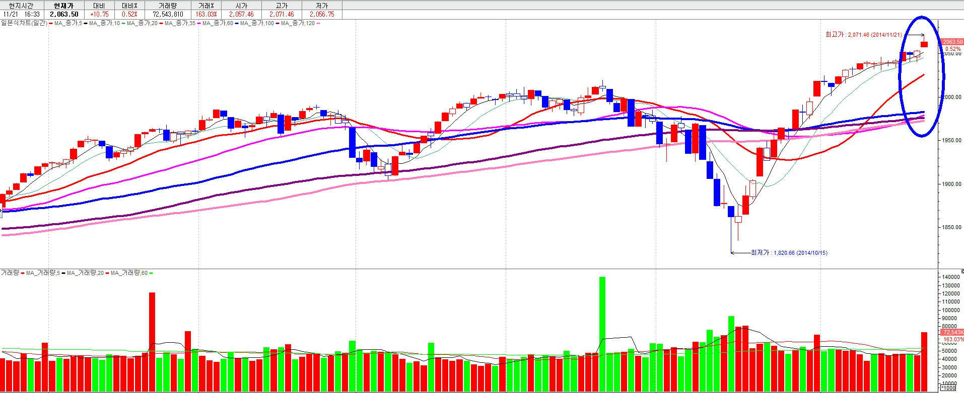 하지만 유럽의 말로만 경기부양책과 중국의 소극적인 경기부양책으로 어제의 급등이 향후 증시의 강한 상승추세로의 전환이라고 보기에는 좀 이르지 않나 싶다.