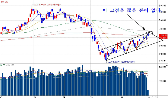 금일 삼성의 급등으로 인해 필자가 설정했던 코스피지수 목표치 1998p 을 거의 도달하고 음봉이 나타나고 있다.