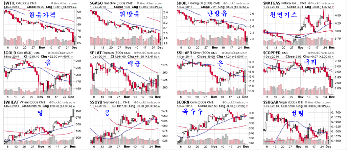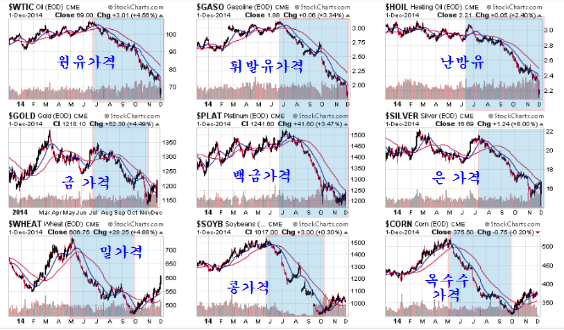 투기로 급락했던 곡물 격이 먼저 회복되고, 금과 은의 귀금속 가격이 투기적 매매로부터 벗어나며, 이어서 에너지가격이 급락으로 매도포지션을 청산하고 상승으로 움직인다.