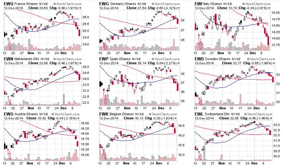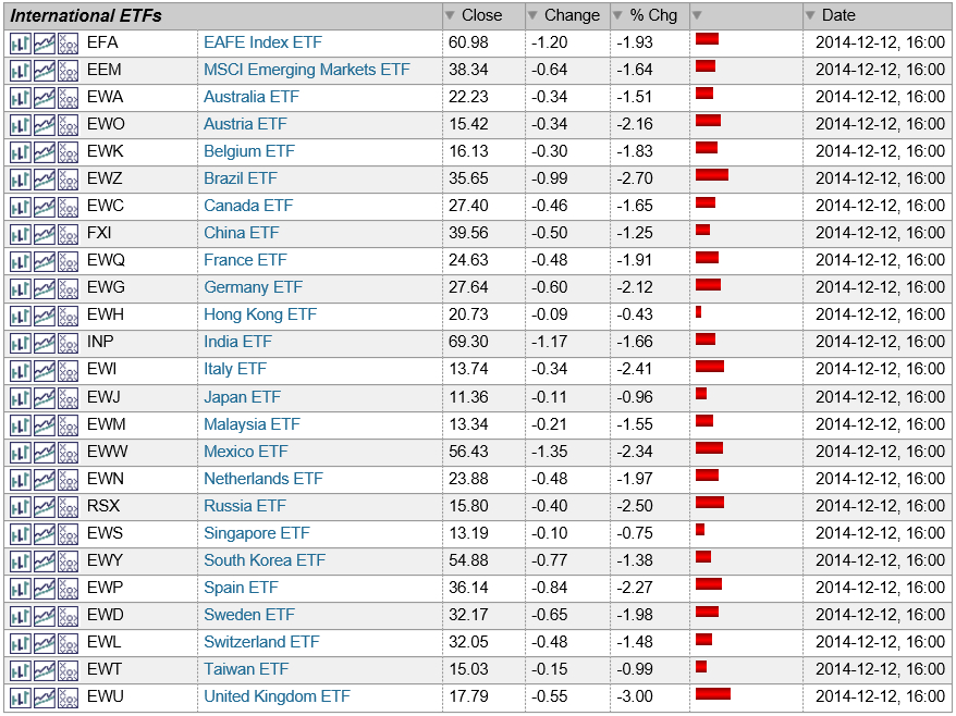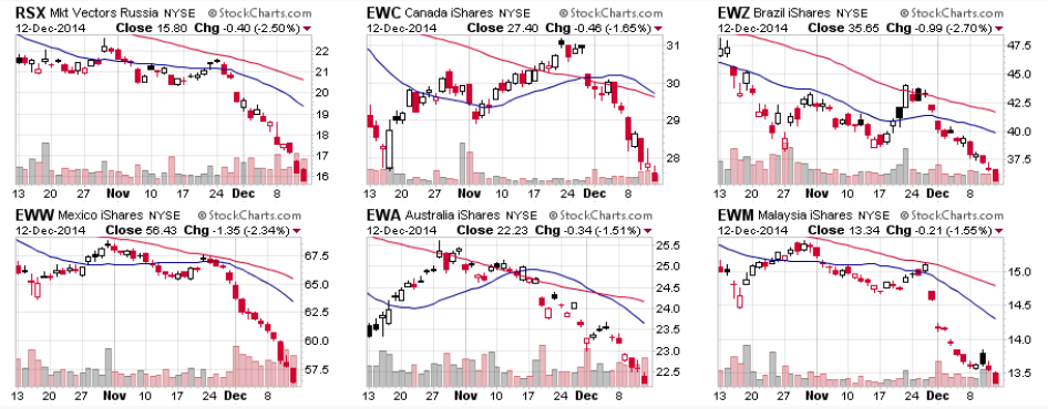 원유가격 하락과 함께 러시아를 비롯한 산유국인 캐나다, 브라질, 멕시코, 호주. 말레이시아 등 산유국의 주가가 급락했다. 멕시코 펀드의 경우 14일 연속 음봉 하락이 나타났는데 주식시장에서 대단히 이례적인 장기 연속 하락이다. 이처럼 극히 예외적인 급락이 이어진 만큼, 유가의 반전과 함께 이들 산유국의 주가와 환율은 급격한 반전 국면이 나타나게 된다.