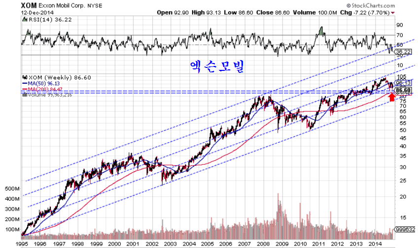 뉴욕종합지수가 200일 평균을 돌파시키는 하락이 나타나 하락이 장기로 이어질 듯 보이지만, 엑슨모빌이나 채권, 환율, 상품 시장과 결부해 부면 하락이 제한된 곳이며 상승의 전환점에 되는 곳이다.