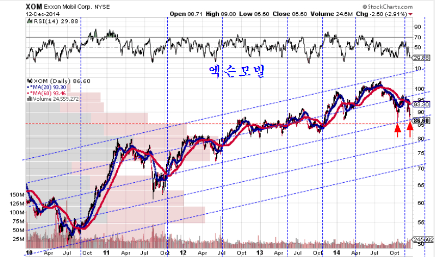 금요일 미국 증시는 엑슨모빌이 2.91%가 하락하는 영향을 받아 하락폭이 크게 나타났다.