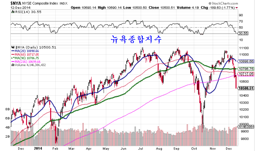 이런 흐름에도 불구하고 뉴욕 종합주가지수는 흡사 200일 평균을 깨고 장기 하락이 시작될 것 같은 속임을 주는데, 추세의 큰 전환점에서는 거의 예외없이 이런 속임이 사용된다.