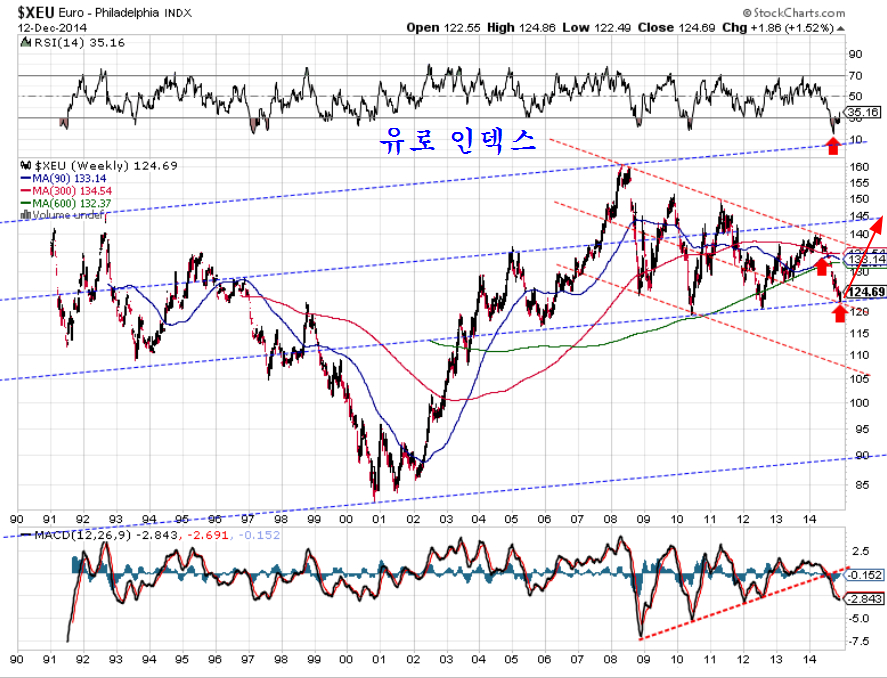 앞으로 유로는 유로의 양적완화에도 불구하고 장기 상승 추세를 보이게 되며 인덱스 145를 목표로 상승으로 움직이게 될 듯 하다 .