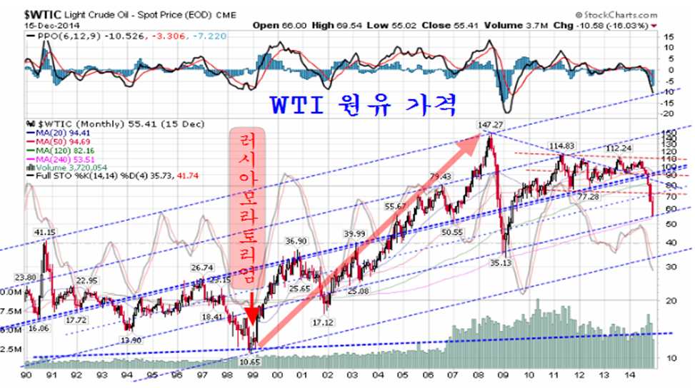 간혹, 이런 악재가 오래 지속되다 보면 최악의 상황을 가정하여 우려를 극대화하는 경우가 많다. 말하자면 유가가 더욱 하락하여 1998년처럼 러시아가 모라토리엄을 선언하지 않을까 하는 생각이다.