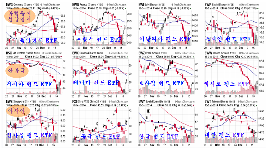 쥬라기 : 맨 윗줄은 오늘 선물 옵션 만기가 있는 유럽 각국 펀드이고,