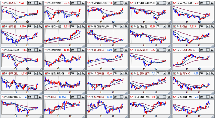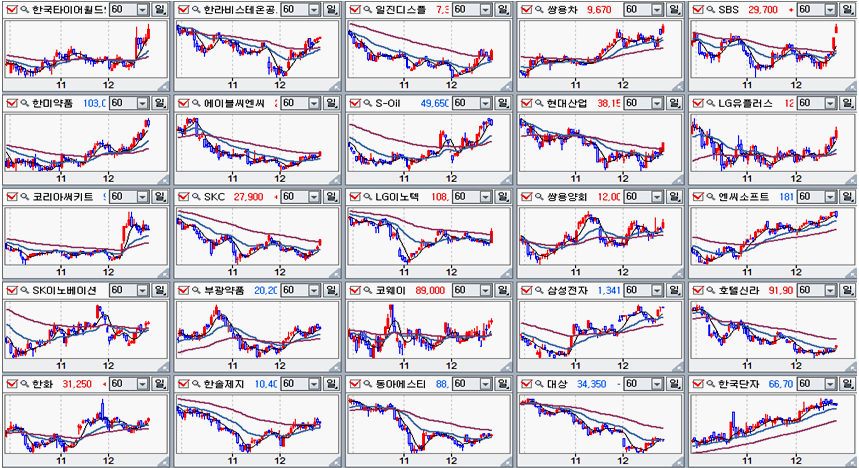 실제 개별 종목을 보면 최근의 해외의 불안한 모멘텀에도 불구하고 11월 저점을 형성한 후 꾸준히 오르는 기업이 많다.