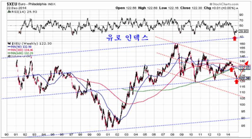 따라서 원유가격 하락으로 야기된 산유국 불안, 유럽연합의 연계 불안을 이유로 상승한 달러는 향후 크게 상승하기 보다는 장기 하락으로 추세 전환이 쉽다.