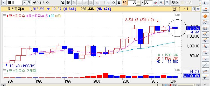 월봉으로 본 2014년 증시.
