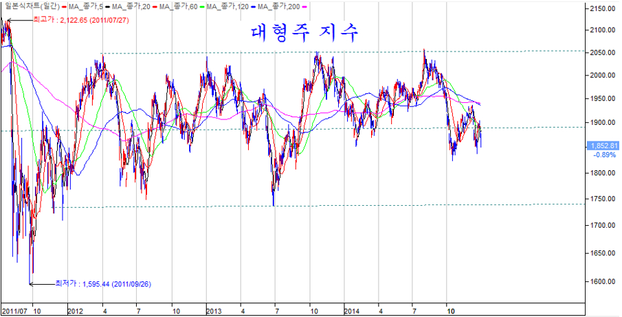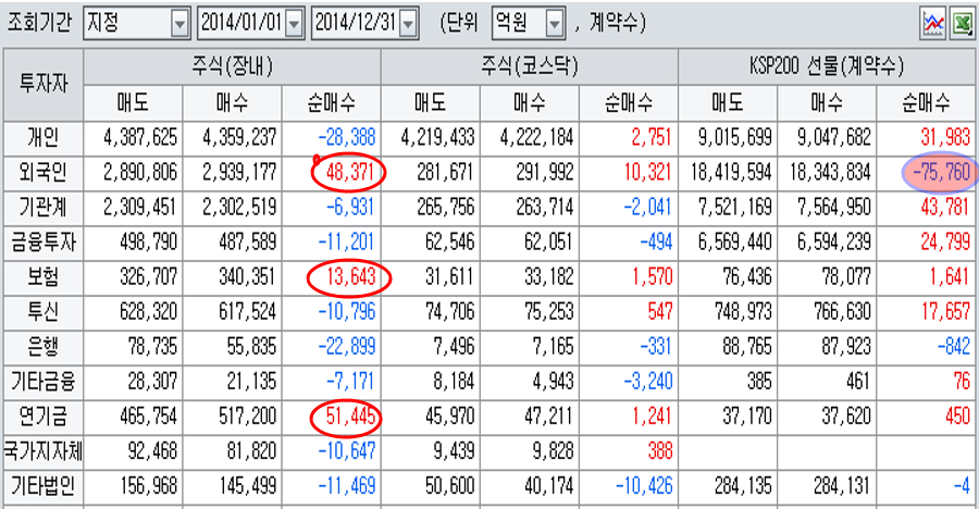 다만, 2014년은 특별히 투자자에 어려운 몇 가지 요인이 있다. 첫째, 파생상품과 연계되어 있는 대형 우량주가 대체로 하락했다는 점이다. 이 때문에 보수적으로 우량 대형에 투자하는 투자자들의 투자 성과가 좋지 않다.