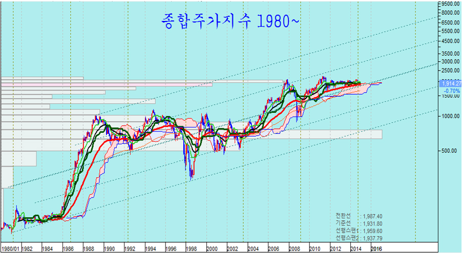 이런 이유 때문에 경기가 어려워도 주가가 4년이상 정체하는 경우가 매우 드물다. 따라서 2010년 이후 지수 2000선에서 5년째 머무는 주가는 내년 6년째 괴리 상태가 확대된다는 점에서 이런 리를 메우기 위한 강한 상승이 나타날 조건이 되어 있다.