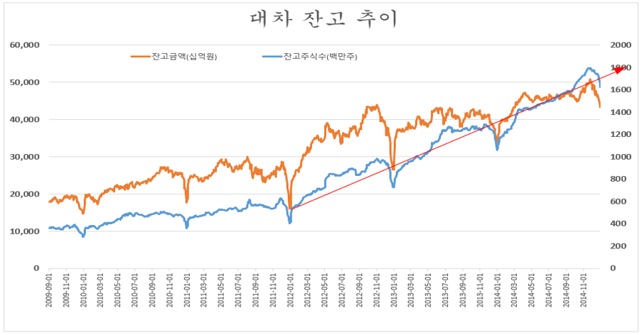 넷째, 지수가 단기 차익거래가 쉽지 않은 상하 10% 이내에서 등락하는 지루한 박스권 정체와 유난히 급증한 공매도에 의한 일반적으로 개인 매수한 기업의 주가 하락의 영향이 컸다.