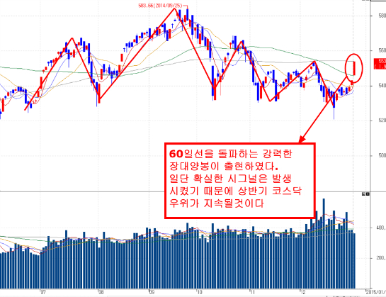 2014년 12월달 60선을 깨면서 대세선을 이탈시키는 흐름을 보이며 마감하였다.