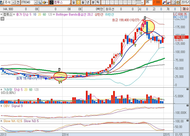 이 외 모바일 게임주들의 급등은 그야말로 2014년 하반기를 강타했다. 이 뿐 아니라 중국 관련주는 어김없이 급등했고, 연말에는 삼성의 지배구조 개편으로 인한 관련주들의 급등이 이어졌다.