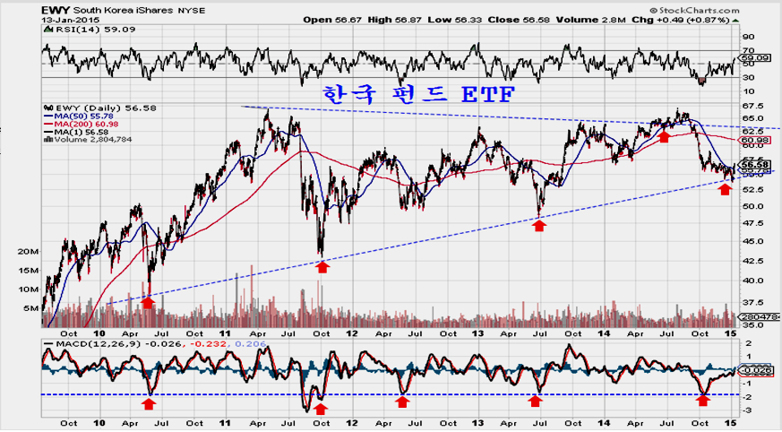 참고로 블랙록이 운용하는 한국 펀드 ETF는 지난해 9월 급락 이후 긴 조정 끝에 주가가 20월 평균과 60월 평균을 넘어서며 상승의 모습을 갖춰가고 있다. 미국 국채의 하락으로 자금이 유입되면 다시 외국인 주도의 상승 장세가 전개되는 만큼 이 흐름도 주목해서 보면 좋다.
