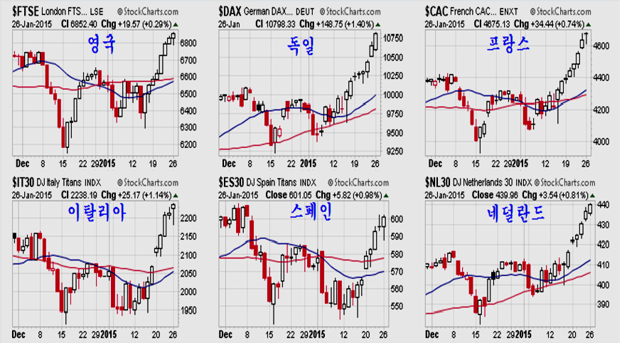 미국 증시는 옵션 시장의 투기와 함께 더딘 걸음을 하는 사이, 15년 저항을 돌파한 유럽증시는 거침없는 상승을 하고 있다. 영국을 포함한 유럽 각국이 증시가 8일째 상승이 이어지면서 세계 증시를 리드하고 있다.