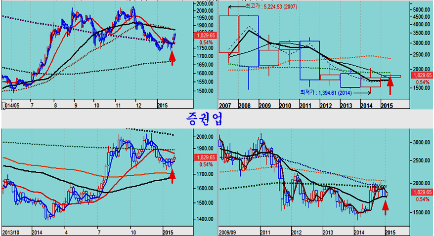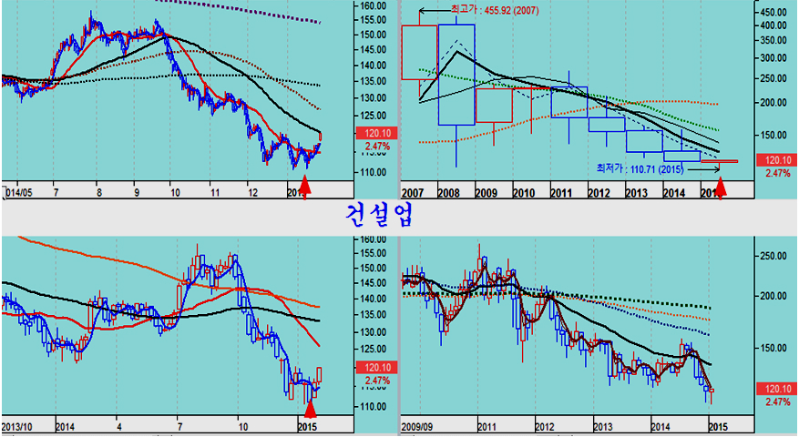 화학주의 뒤를 이어 트로이카인 은행, 증권, 건설과 기계, 운수, 조선 등 그간 하락이 깊었던 기업들이 상승 전환의 움직임이다.
