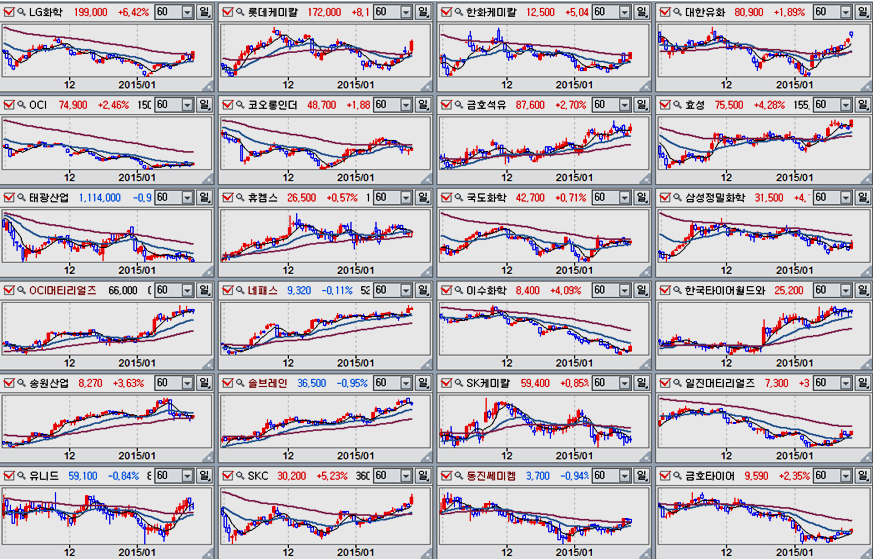 유가 하락으로 가장 실적에 영향을 받을 것 같은 화학주가 오늘 기관과 외국인의 매수와 함께 급등했다.