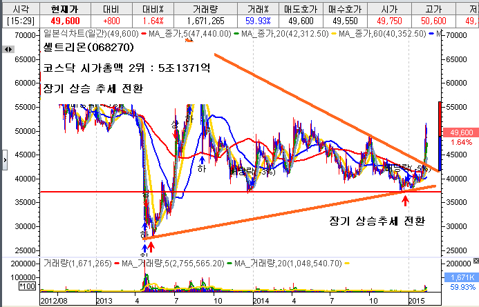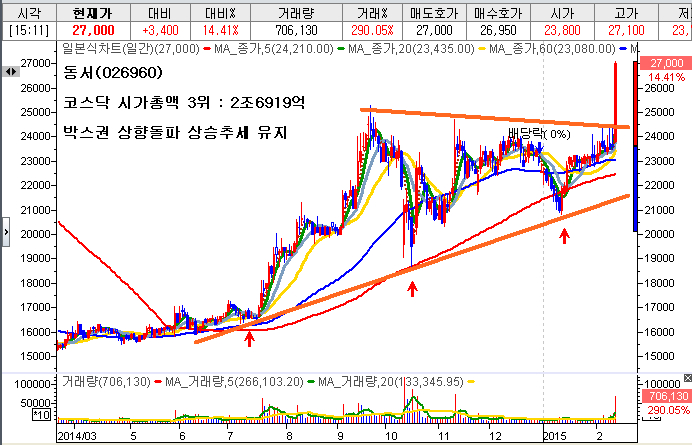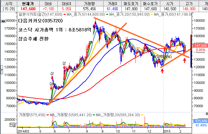 코스닥시장의 시가총액 기준 1~3위에 그룹인 다음카카오, 셀트리온, 동서가 상승추세로 전환하였으며