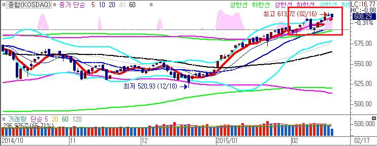최근 코스닥 시장에서 발생한 240주 볼린저 밴드에 관심을 기울이는편이 훨씬 나을것이다.