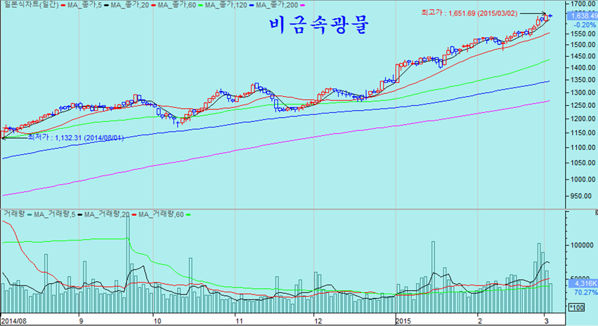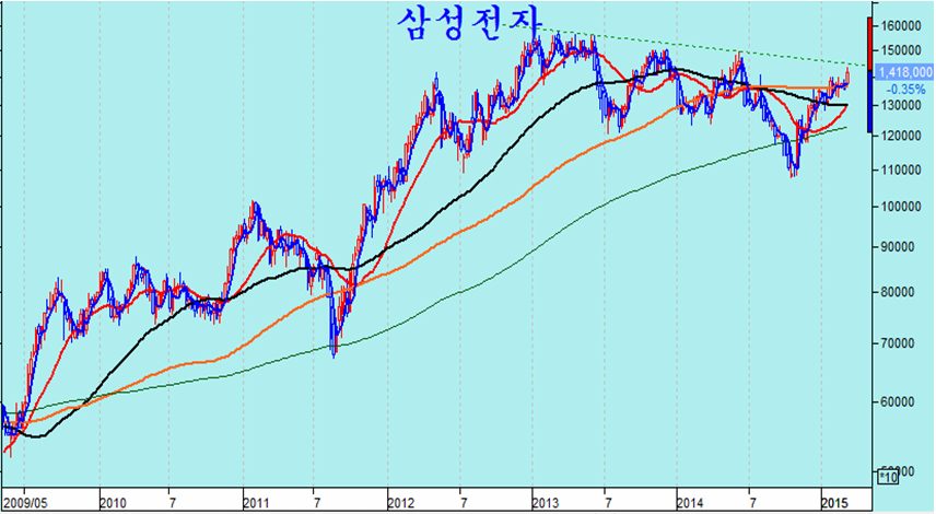 여기에 역사상 최고 사양과 디자인과 핵심부품에서 강력한 경쟁력을 가진 갤럭시6가 IT주 부활을 예고하고 있어 시장은 건설을 선두, 스마트 폰을 좌익, 경기에 민감한 중국주를 우익으로 하는 삼각 편대를 이루며 이륙할 모습이다.
