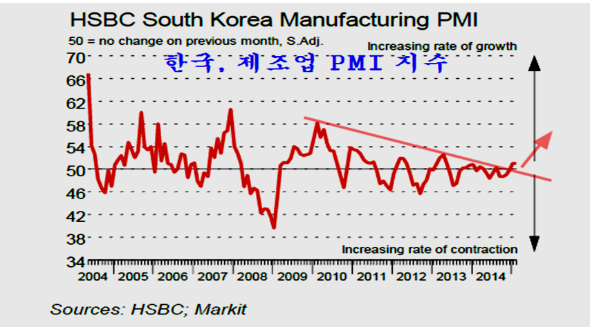 최근 한국의 제조업이 강세를 보이고 서비스 업종이 힘이 부친 것은 이런 경기의 변화를 반영한다.