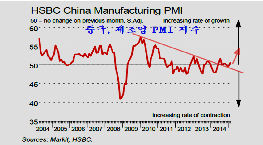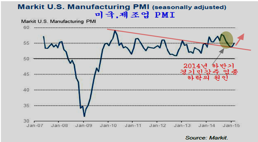 이제 중국이 긴축에서 팽창 정책으로 돌아서고, 오랜 침체를 거친 유럽과 일본이 양적완화와 함께 본격 성장이 시작되고 여기에 미국이 가세하면서 세계 제조업 경기가 기나긴 잠에서 깨어 기지개를 켜고 있다. 이에 따라 한국의 중화학 공업 역시 세계의 수요처가 살아남에 따라 회복을 시작한다.