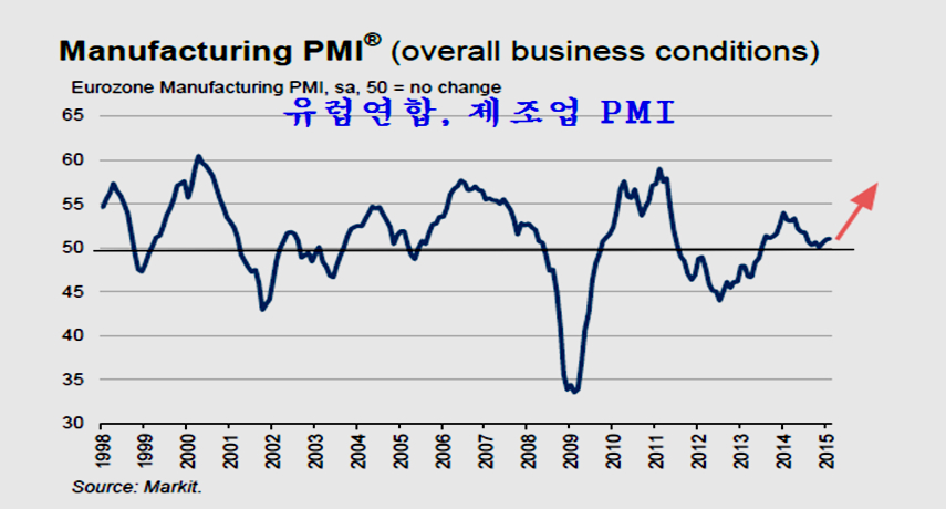 3월 세계 제조업이 일제히 회복되는 모습이다. 2013년 11월 이후 둔화가 진행되었던 세계 제조업 경기가 2015년 들어 회복세로 전환되어 있다. 따라서 2013년 11월부터 장기 조정을 거쳐 온