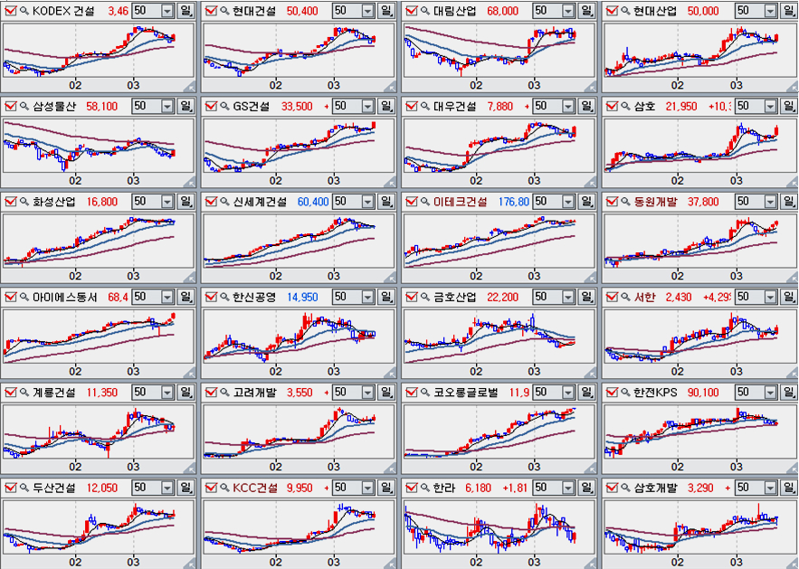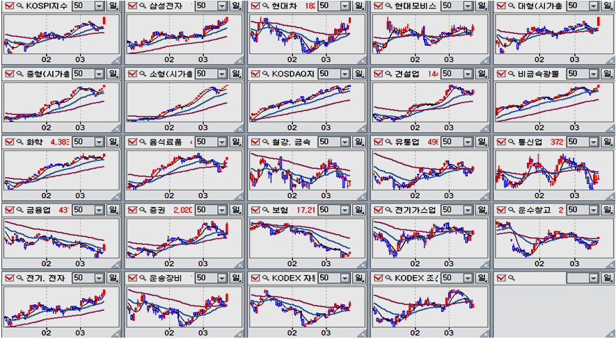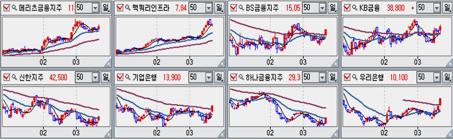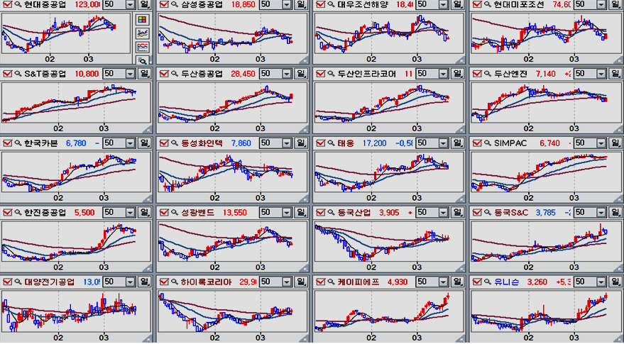 기계와 조선업종도 장기간 침체를 벗어난 상승이 시작되는 흐름이다. 철강 ,기계, 조선이 움직임이 활발한 흐름으로 3월 조정의 저점에서 상승이 시작되고 있다.