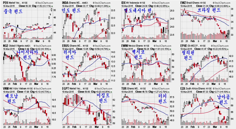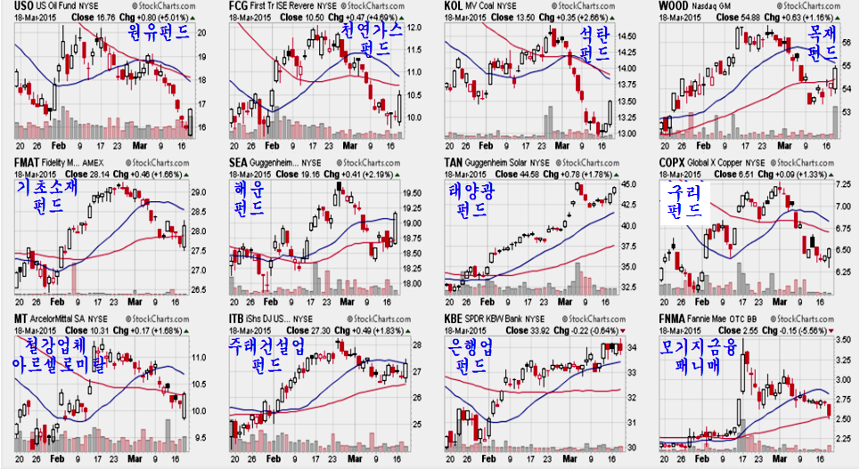 특히 이와 관련된 업종 펀드 (주식처럼 거래할 수 있는 펀드 지분 주식 ETF)들은 모두 큰 상승과 함께 추세 전환의 모습을 보여주고 있다. 원유펀드 5.01%, 천연가스 펀드 4.69%, 석탄펀드, 목재펀드, 기초소재 펀드, 해운, 구리, 태양광, 등이 모두 상승세이다.