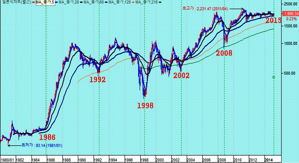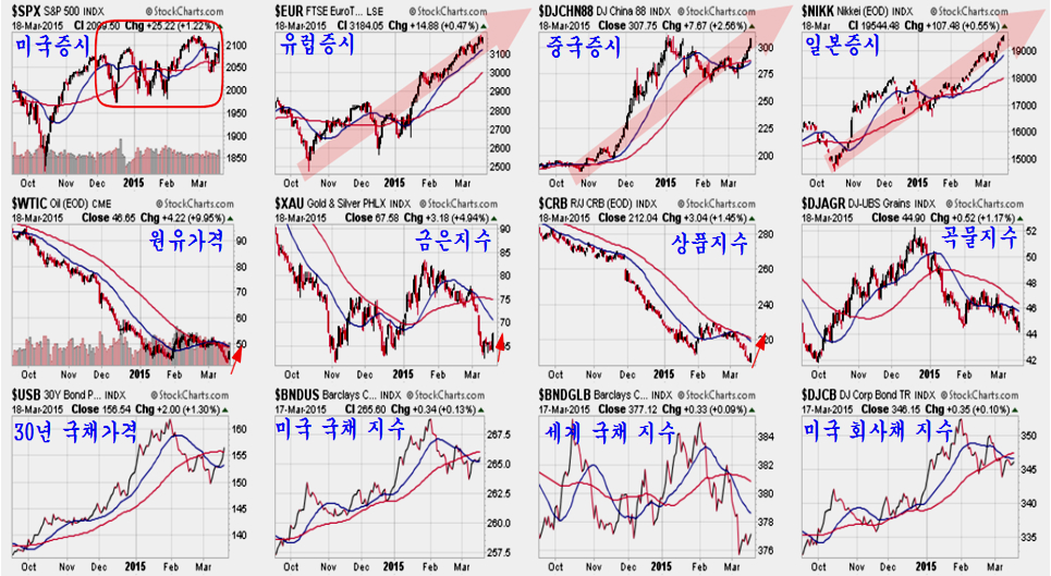세계 4대 경제 블럭인 미국 (GDP 17.4조 달러), 유럽연합(GDP 12조 달러), 중국 (GDP 10.3조 달러), 일본(GDP 4.8조 달러)중 세계 증시의 변동 모멘텀을 만드는 뉴욕증시만 제외하고 모두 강력한 상승으로 움직여 왔다. (신문 기사는 단기 모멘텀을 다루므로 신문을 통해 정보를 얻으면 이런 추세의 움직임은 알기 어렵다.)