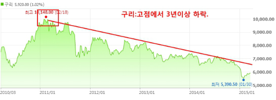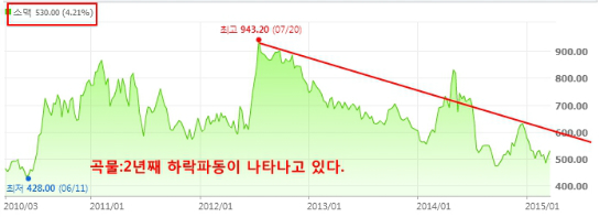 2012년중순 이후 고점을 형성하고 2년째 하락중. 1년이내 상승전환 가능성이 높다.