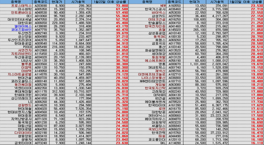 쥬라기: 불과 달포 남짓한 기간에 대형주 주가가 이렇게 오르는 것은
