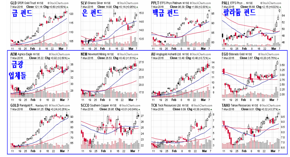 7일 밤 뉴욕 시장은 0.38% 올라 세계 선물 옵션 만기를 앞두고 보폭을 늦추고 있지만, 뒤늦게 출발한 원자재와 상품 ETF는 빠른 상승을 하고 있다.