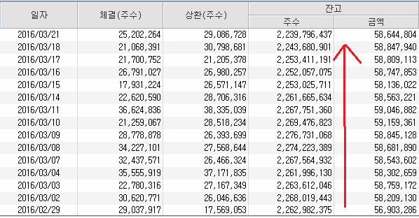 현재 우리 주식시장에서 대차거래 잔고는 58조원을 넘습니다. 2016년 초 43조 수준이던 대차거래 잔고 규모는 이후 증가세를 지속하면서 1월 한달에만 10조가 넘게 증가했습니다. 그러면서 사상 최고 수준을 지속하고 있습니다. 이것 때문에 하락할 것이라는 예상이 커지고 있는 상황입니다.