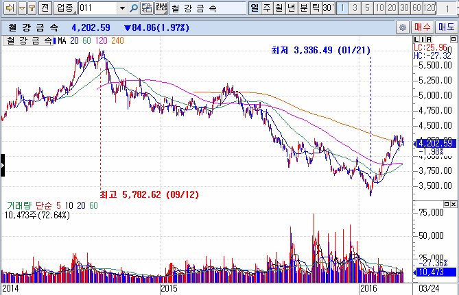 철강업종을 보겠습니다.