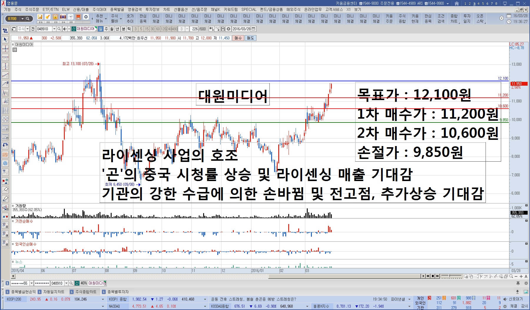 2014년 2월부터 강한 저항대 부근인 11,800원~11,500원 부근, 차트상으로는