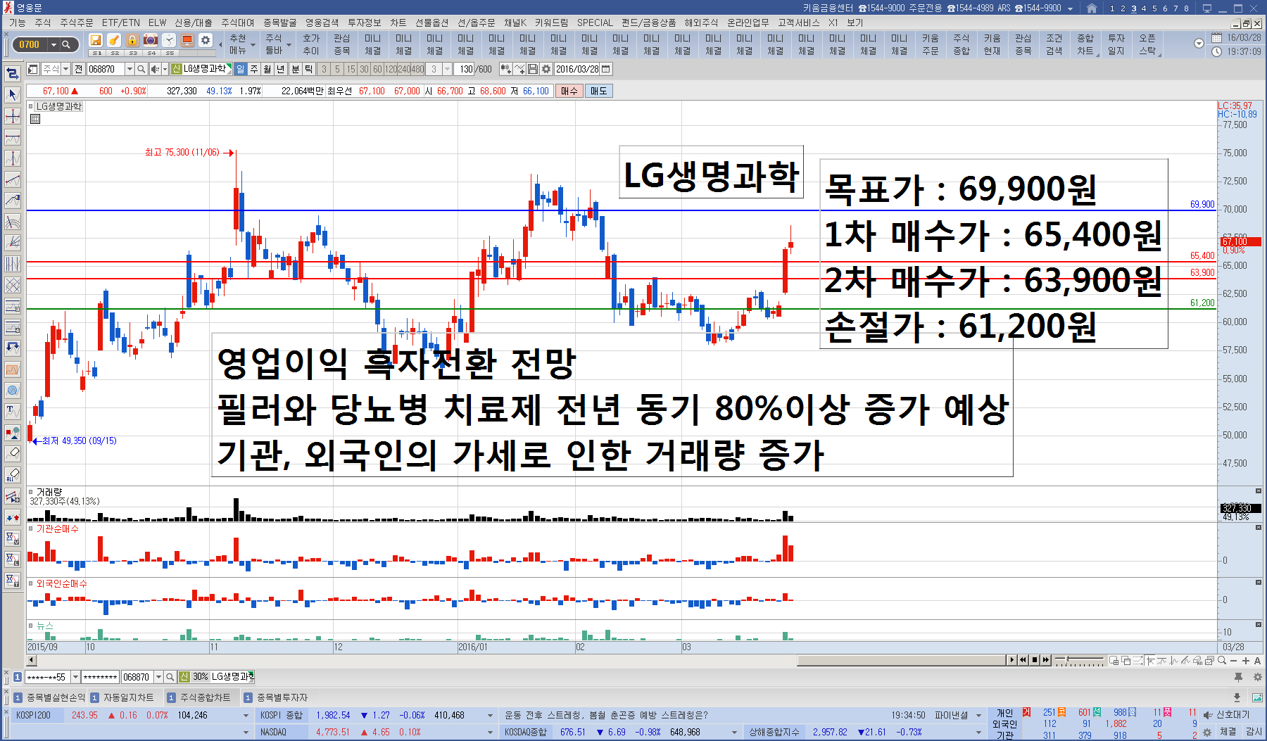 3월 15일 NH투자증권은 LG생명과학이 올해 1분기 영업이익이 흑자로 전환할 것으로 전망했했는데요
