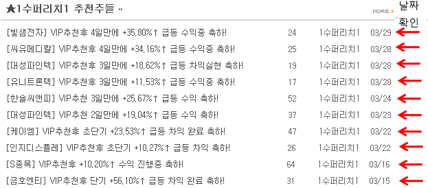 이 줄줄이 터졌으며 이번주 월요일(3/28)장에는 VIP추천 포트폴리오 총 7종목중 3종목이 동