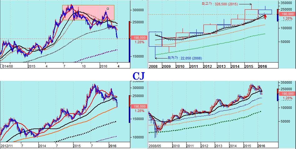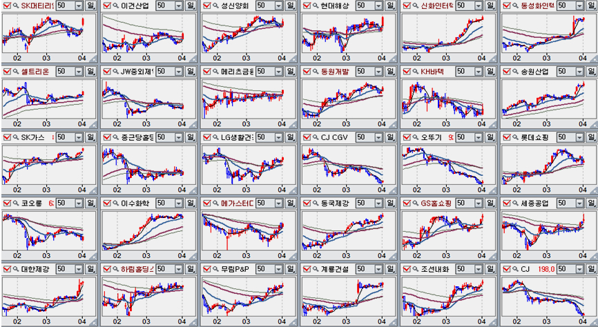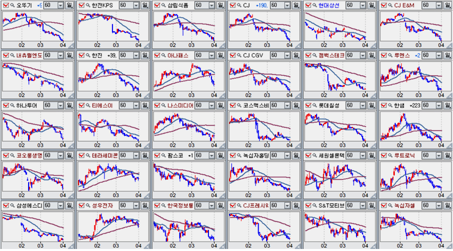 쥬라기: 한편, 오뚜기나 CJ처럼 역배열 하락에서 상승하는 기업은