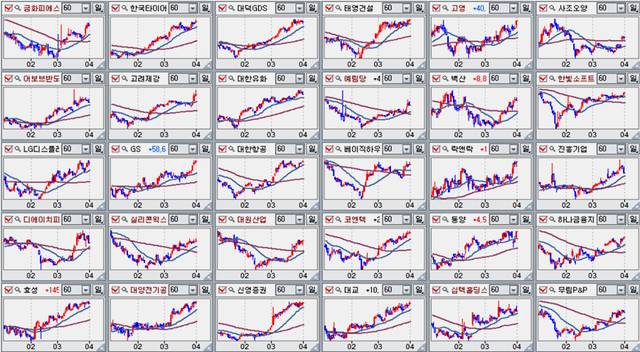 쥬라기: 월초 주가가 분기 시가3선에서 움직이는 우량주 또는 가치주는