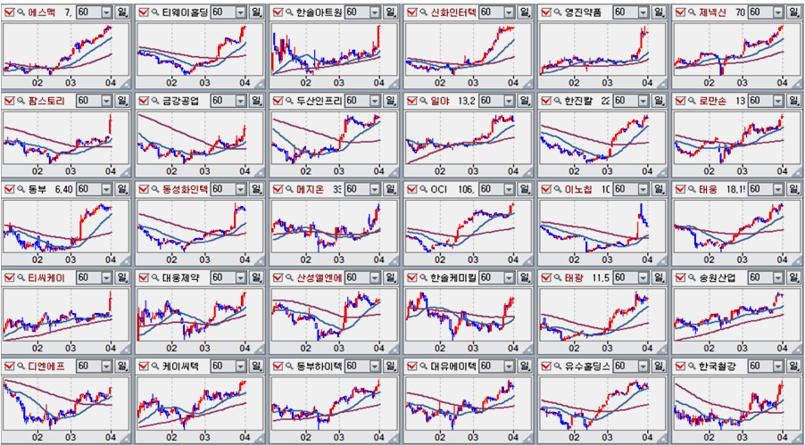 쥬라기: 주가를 보면 60일 평균에서 상승 반전되는 기업이 여럿인데