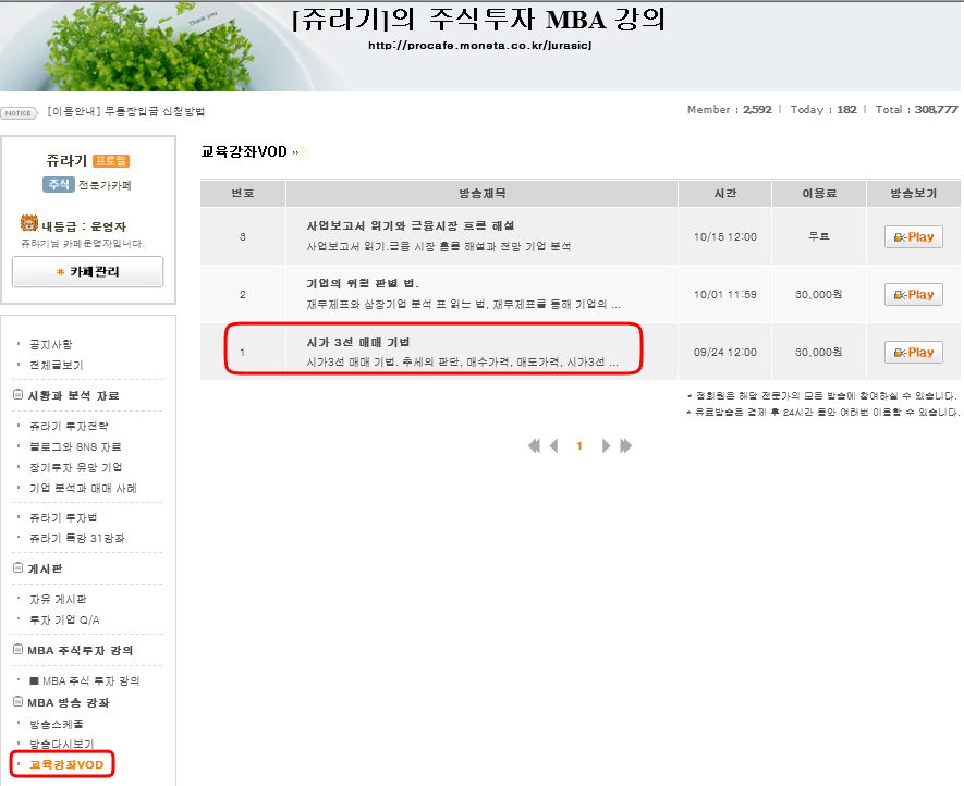 쥬라기: 관심 종목의 분기 시가 3선을 지난 번 강의한 방법으로 계산 해보고,