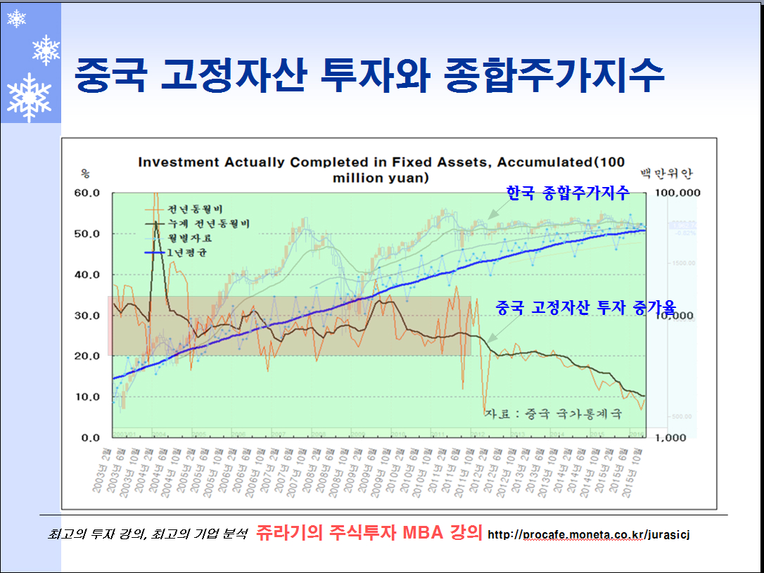 사실 2011년 이후 종합주가지수가 장기 정체 국면에 진입한 것도 중국 제조업의 전방산업인 고정자산 투자 증가율 하락 때문이다.