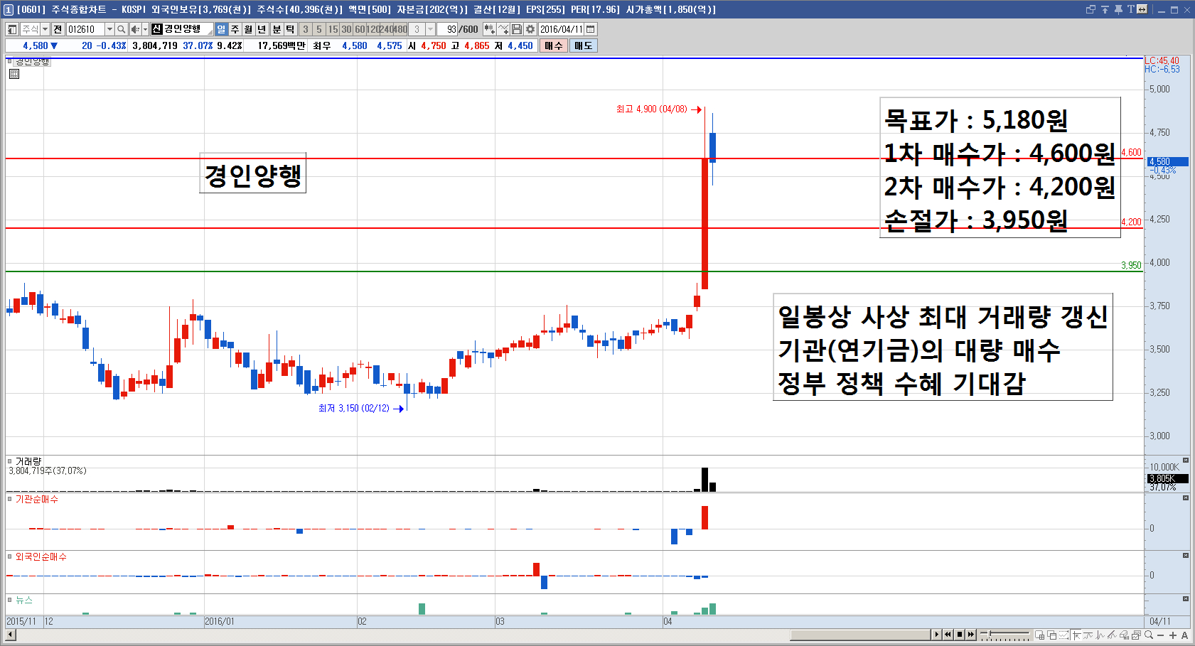 손절가 : 3,950원
