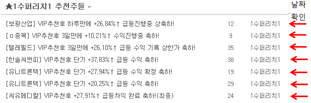 수퍼리치 VIP방송에서는 최근 3주만에 무려 15종목의 급등종목이 터졌으며 이번주 월요일(11일)