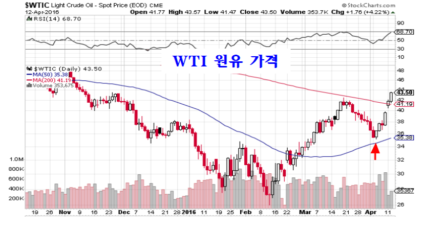 이런 상승의 움직임은 중국 경기의 영향을 가장 민감하게 반응하는 원유를 비롯한 상품 가격에서 나타나고 있다. 원유 가격은 20일 평균까지의 이격 조정을 마친 후 5일째 상승이 이어지며 주식 시장 상승을 앞서 예고하고 있다.